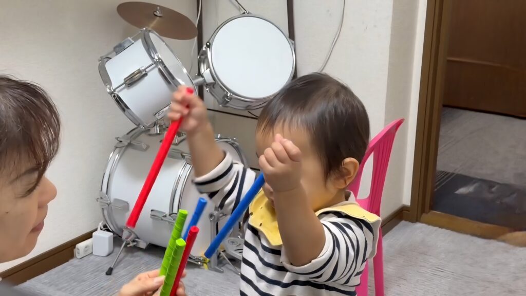 まだ1歳10ヵ月ですが、この年でもしっかり音の高さ、速さを聞き分けて音に合った体の動きをすることができます。