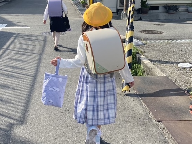 ほんの数日前までは園児さんだったのに、ランドセルを背負うだけで急に大人びて見えるから不思議。